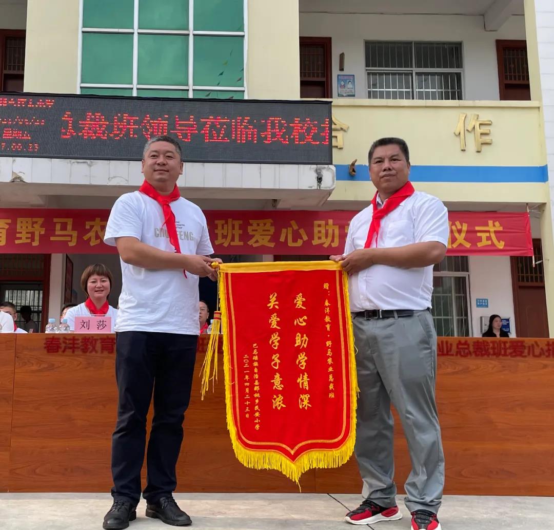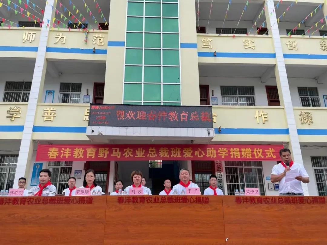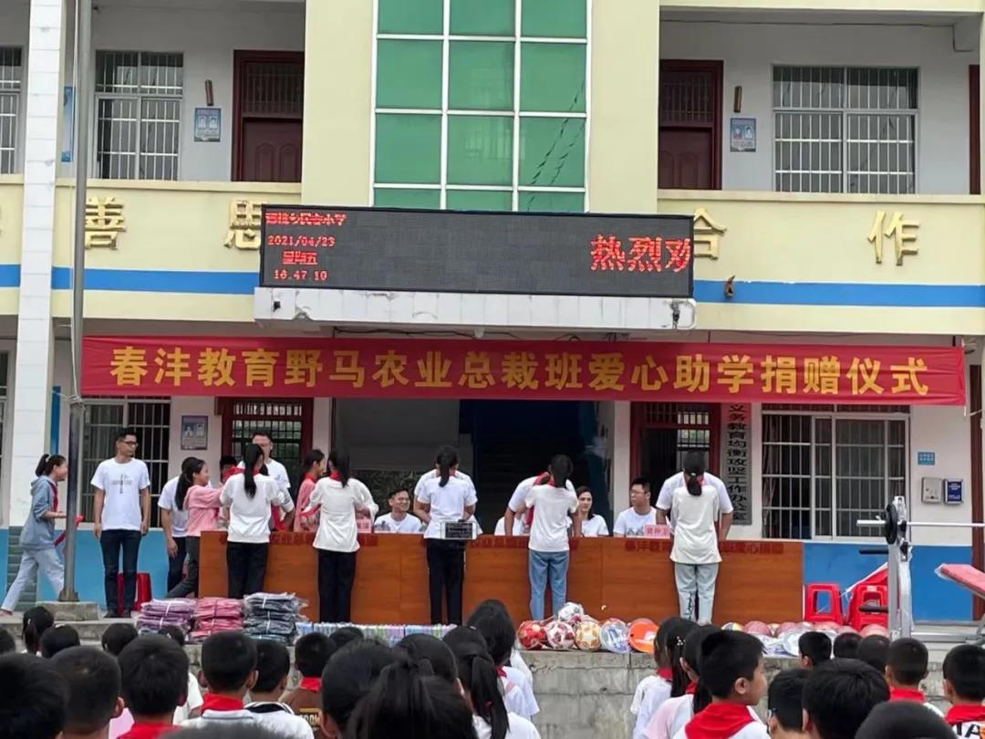 人间最美四月天,不负春光不负爱!2021年4月23日,春沣教育野马农业总裁班爱心助学捐赠仪式在广西巴马民安小学正式举行,春沣教育执行院长于千携总裁班二期学员参加此次活动。