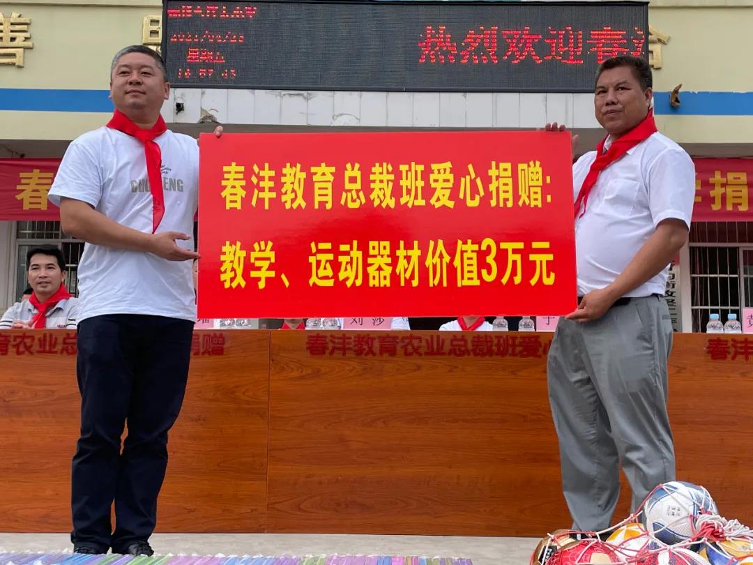 爱心助学情深,关爱学子意浓!在这次捐赠仪式上,春沣教育总裁班爱心捐赠了价值3万元的教学、运动器材,校方特送一面锦旗表示感谢,希望这些爱心物资能让孩子们更好地学习生活!