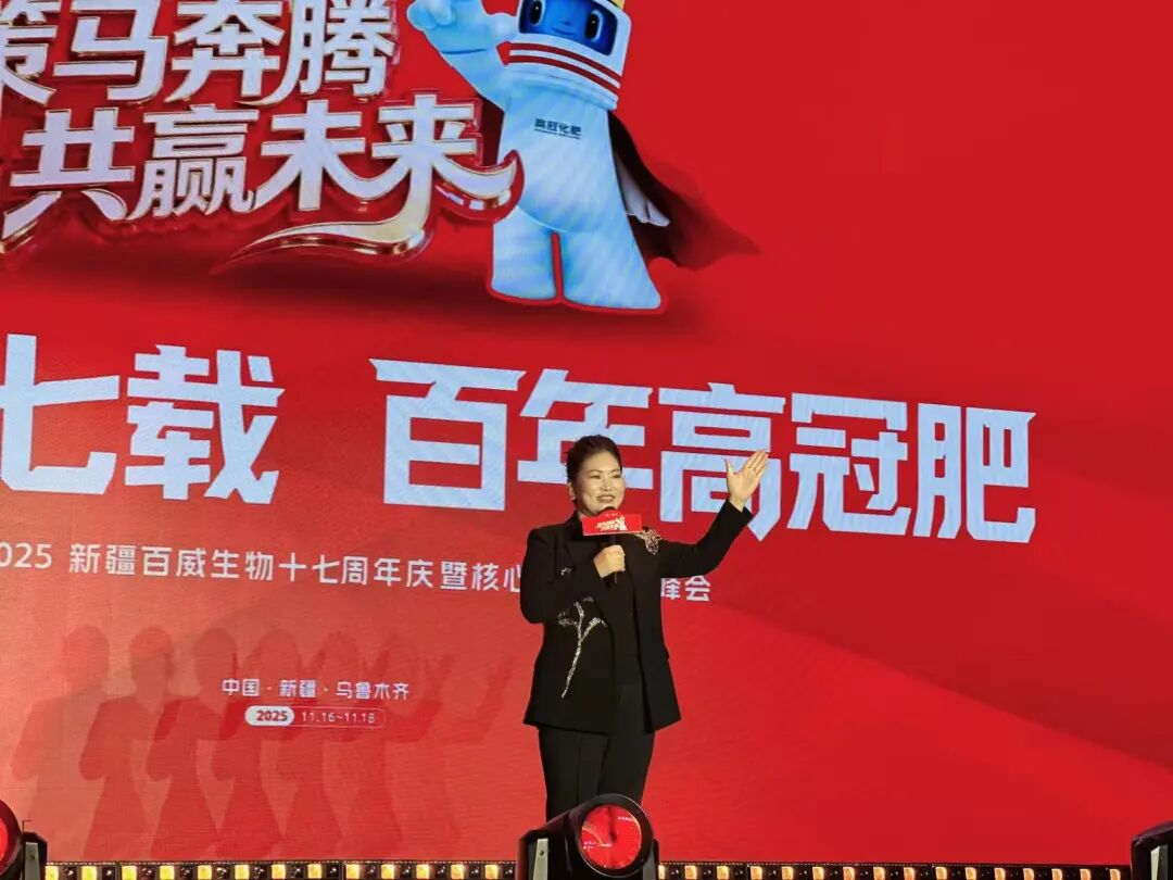 2025 年 11 月 17 日,新疆百威生物技术有限公司在乌鲁木齐希尔顿酒店盛大举行百威高冠肥十七周年庆典,公司董事长石丽丽、深圳市百年盛世营销管理咨询有限公司总裁赵一沣及百威生物核心经销商一百多位齐聚一堂,共襄盛举,谋划未来发展新蓝图。